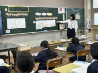 子どもたちは初めて出会う「掛ける」という計算に興味津々で取り組み、